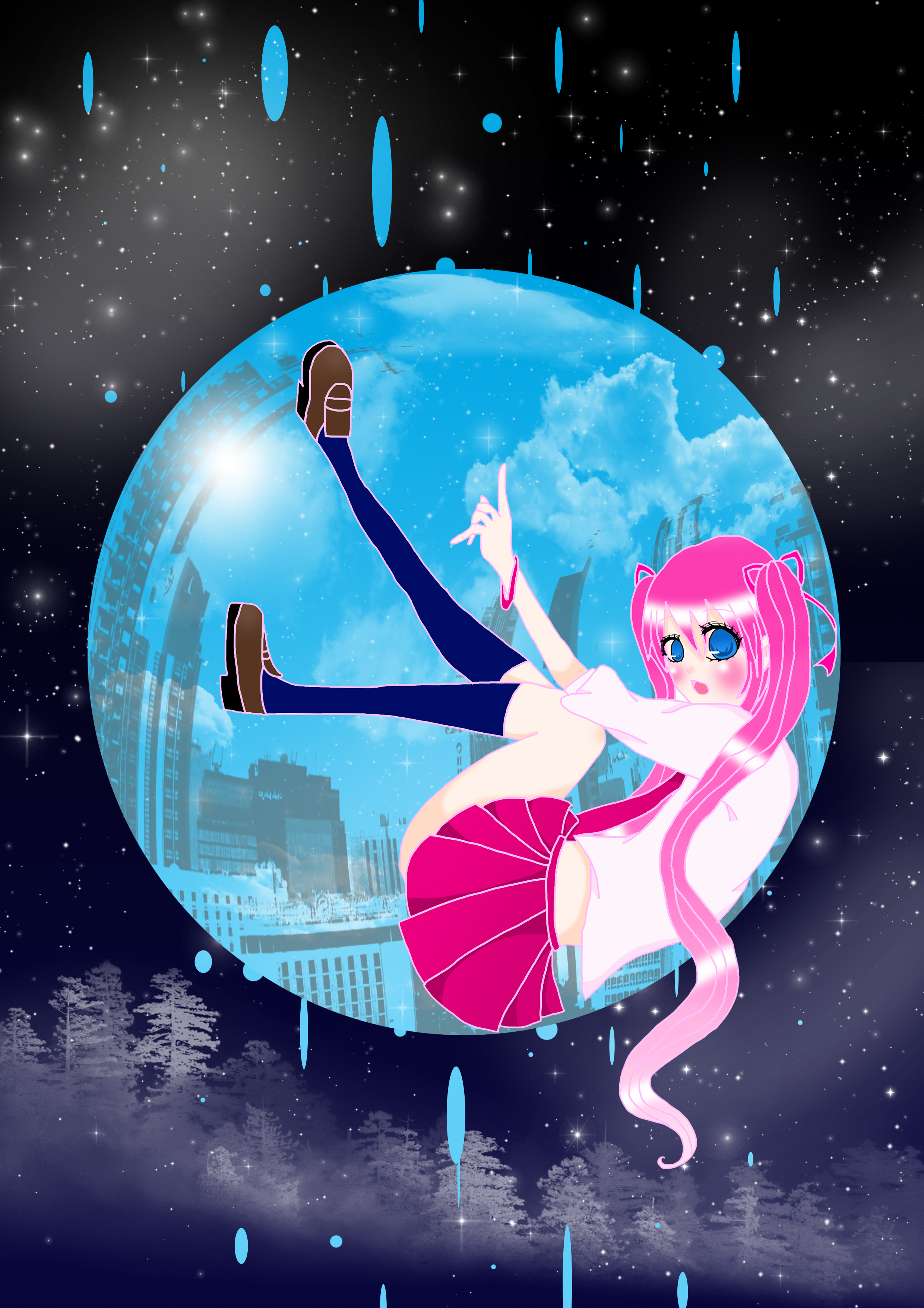 これから夏にぶち当たるというのに、冬景色的なのになっちゃった絵汗