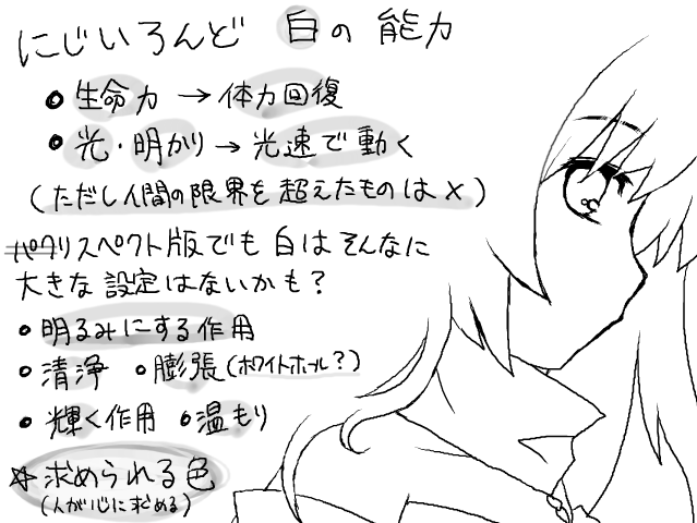 多分色の力は人知を超えたタイプの方がしっくり来ると思うし白=善の技の回復は持っているかもしれない。