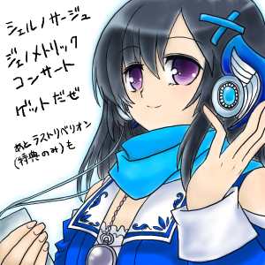 耳にくっついてるのはテキトーニ描いたイヤホンもどきです。 音符っぽくしたかったんやけど失敗した感バリバリですな。 ジェノメトリックコンサートとラストリベリオンのミニサントラ視聴中。 シェルノサージュの方はネプトリュードがネリコっぽくて好き。 ラストリベリオンは本体(ソフト)は買ってないです。特典の冊子だけ。 ほんでラストリベリオンミニサントラ聴いてみたけど ゲームはアレな評価やけど音楽は良いのよ音楽は。 さすがは近藤嶺さん(主に戦闘BGM担当らしい)ですわ。