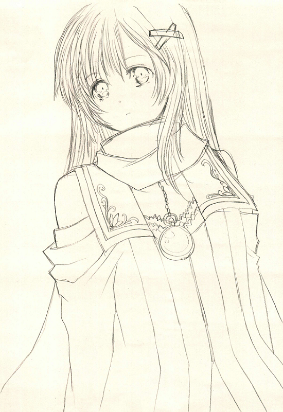 色塗ったら逆に変になったので色なしうp。 結果的にはそんなに違いは無いだろうけど デジタルとアナログとでは髪の描き方が違ったりする。