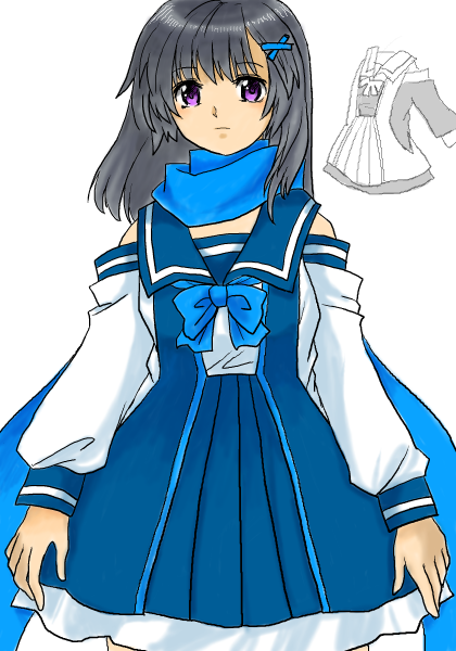 何となく気になった服があったので何となくそれ見ながら試行錯誤。 制服度を上げたようなそうでも無いような半端な感じになった。 あと一寸スカートの丈短い。 広がりも無いはずだったがなぜか広がってしまった。 下がワンピース調だと上着?の部分はあんま意味無いような気がしないでも無い。