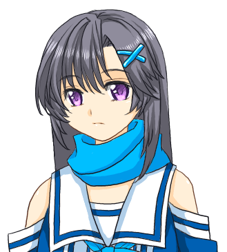 「女」「黒髪ストレート」「紫眼」「コンセプトカラーは白と青系統」