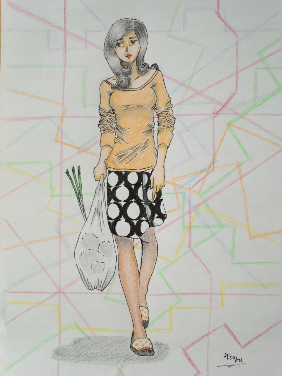 買い物袋描いて、ネギ出したらリアル感出過ぎました…