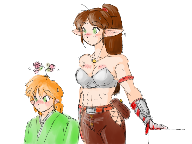 | 説明文 | AzPainterで、さくさくざかざかっと。 お互いを意識し始めている事を、通りがかっただけの「えりあん」に「両想いって素敵ですよね〜」と看破され、「お幸せに」まで言われてしまってのヒトコマ。 あまりのことに、はからずも同じタイミングで同じ方の耳がピクッと動く。 *「えりあん」には、自身が気づかない「看破」の巫力(自身由来の能力)が有り、それが助けとなることも多いが、彼女自身に危機や心の痛みを呼ぶこともある。 |