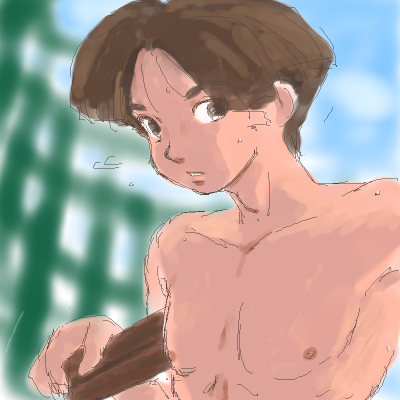 | 説明文 | さくさくざかざかと、ふぇりぺくん。 んでもって、双節棍のお稽古の図。 やっこさんは、街のアカデミー付属の施術院に籍を置きつつ、実習生として、高度な治療術を学んでいる。 メイスを扱ったりもしたが、「体が小さく、体重が軽い」ために馴染まず、 エルに頼んで、双節棍(大きなヌンチャク)の基礎的な套路を示してもらい、自力で練武を行っている。 コレは、エルにダメ出ししてもらってるところを、お嬢様に見つかった場面。 ひらがな表記が示すように、「抜け切らない可愛らしさ」とか、「いまいち漢になりきれていない青さ」が出ないかな〜と。 |