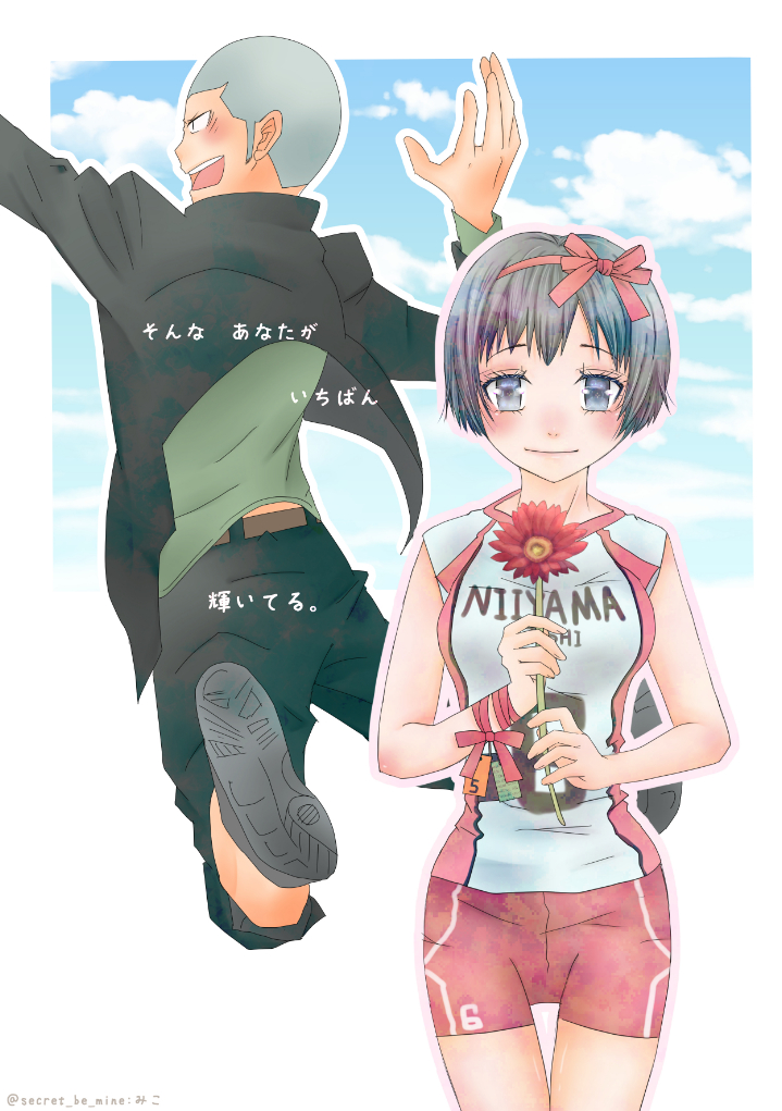 バレンタインデーに大地さんと田中のイラスト頂いたのでお返しに大地さんと日向描きました(そのCPのサークルさんなので)