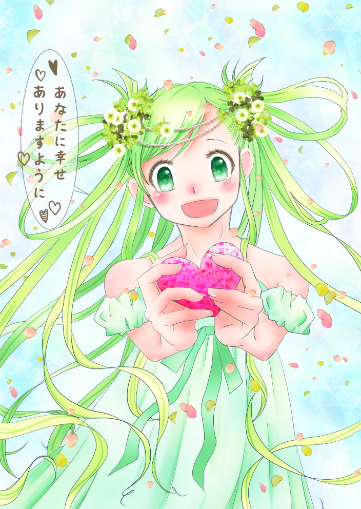 お久しぶりですー! 生きてますー! 先日、四つ葉のクローバーを見つけたので記念に擬人化してみました! 四つ葉ちゃん♡ きっと近くに居るから見付けてあげてね(*´ω`*)