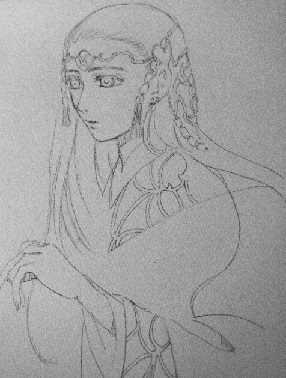 頭の中でイメージがまとまったら「Art spiral」というスケッチブックに直接「大人の鉛筆」で下絵を入れます。 今回は女性のイメージでしたが、ムリヤリ男性で描こうとしたら失敗して結局消したという紆余曲折があります。