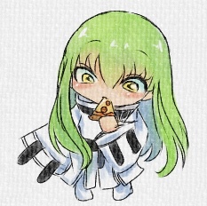ピザ食べてるC.C.です。