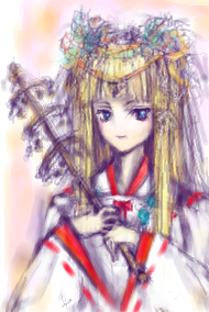 自由に描けと言われたら、無意識のうちにまた巫女絵に・・・