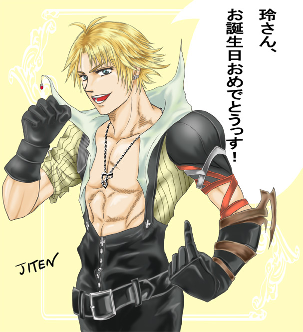 | 説明文 | ティーダを描いちゃいましたw JITENテイストなんで、ちょっと胸開き気味オホホw 筋肉増量wゲヘヘ 非常に楽しんで描けました♪ 残念ながら・・・ちーだはたくさんアクセサリーを落としちゃったみたいです(:_;) (腕輪アタリorz足りないよぅ・・・ 資料も足りなかったんで、PSPでキャラ図鑑グルグル回したり^^; それでも足りないんでFFⅩを久しぶりに出しました・・・。 <op:large>む、全然違う・・・=_=;;;</op:large> しかし久しぶりに見たら・・・やりたくなった^w^; この話は本当にイイんだよ・・・。 |