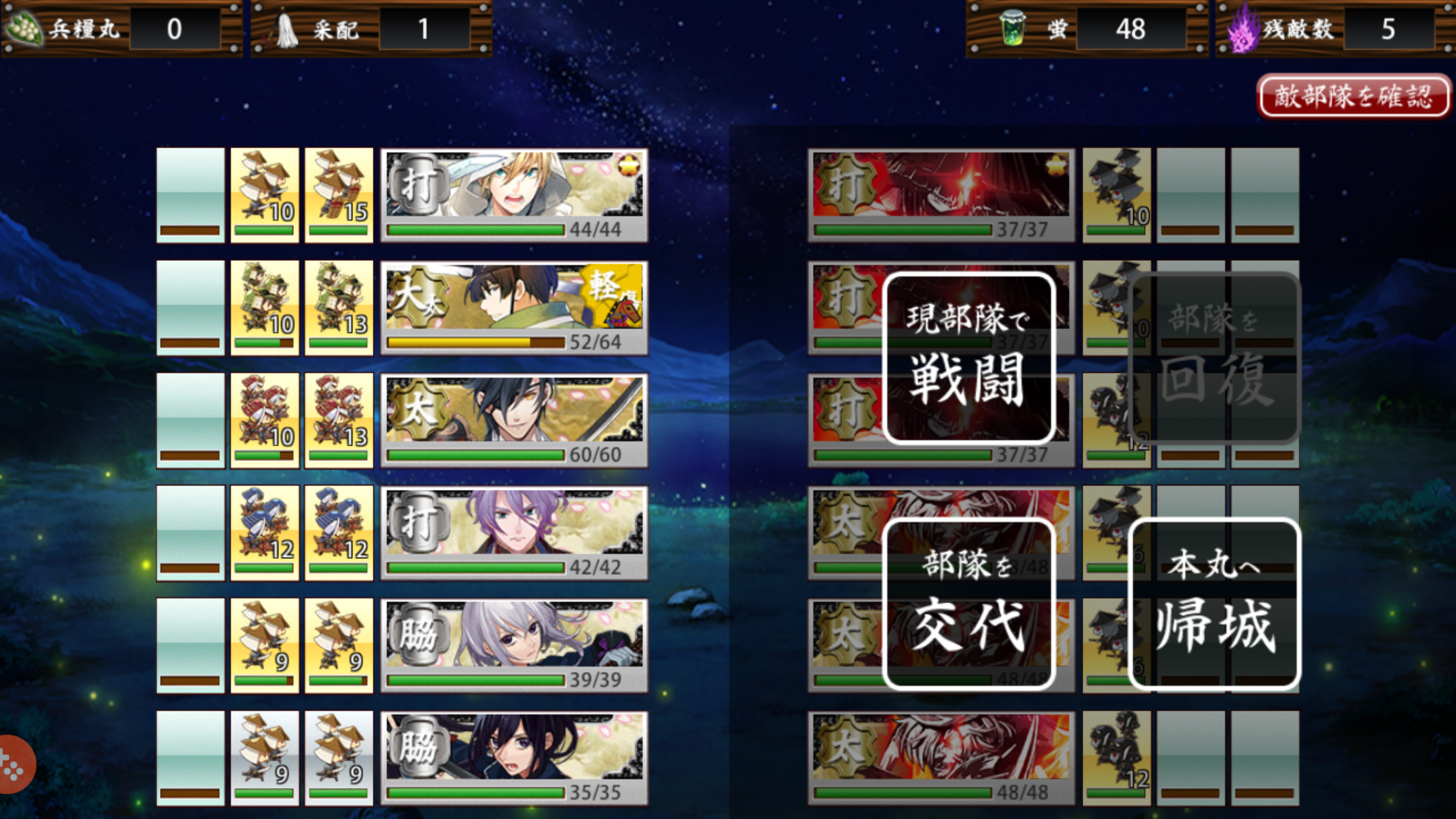 いやはや、刀剣乱舞...(p q´^`) まだまだひよっこだから部隊のレベルが低いから冒険できんのだ。試しに超難ステージ行ったら即死亡〣( ºΔº )〣 強いよ敵さん。 普通のステージでレベル上げかねてコツコツ蛍を集めてる。 蛍丸くんまであと少し。 くううっ!!現実はキビシイ! ━━╋⊂(´、ゝ`)彡 スパッ (・∀| |・) 負けません!