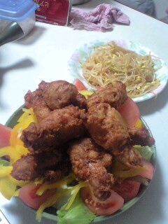 普通のサラダに唐揚げo(^-^)o