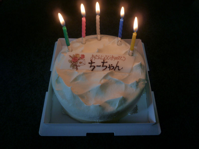 ちぃちゃんの生誕を記念してささやかに営まれました。ちゃんとろうそくは5本なのです
