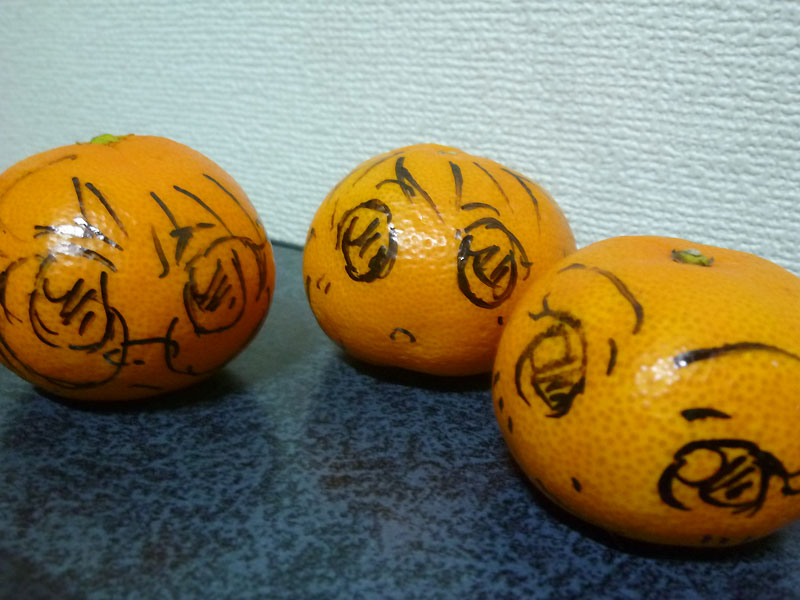 必要なのは、みかんとペンです。