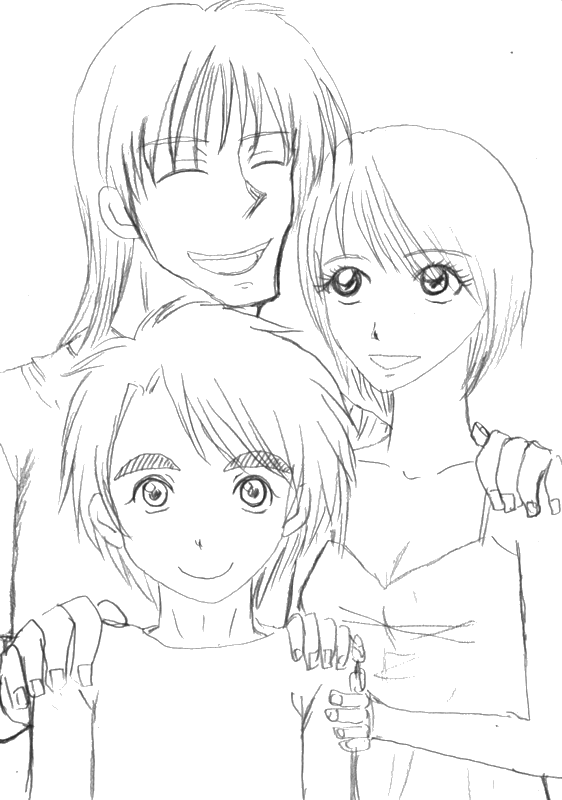 三人の絵に色塗り中。