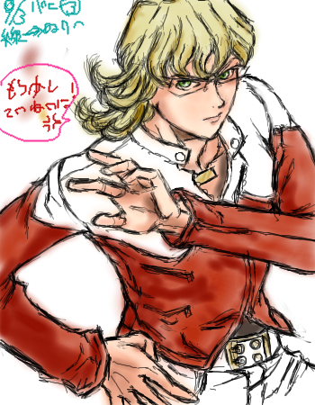 | 説明文 | バニー構え絵3回目、この前の主線軽く入れた続き、線直し、塗りへ。1h30程 手本有っても、全体ノバランスがおかしい; もっと前傾。髪、指、服のしわ、ファスナー・・・ 難しい; この絵は、桂正和本より、2ndOPの止め絵・決めポーズで、グッズにも使われていた。 やっとア〇メイト通販、エラーなので一旦登録削除してもらい再登録でログイン出来た ^^; それで、映画チケット、HERO gossips(本)申し込み、届くのを待っている ・・・ チケットは特典が虎徹のクリアファイル2枚・・・ バニー版も有った。 バニーの肌は、肌パレットでいけそう。ピンクベージュの色白肌。ジャケットの茶色は、 青パレット反転の赤茶で。ベージュパレットだとくすんで薄い。 ついでに髪も青反転で有る、オリーブ系? まだざっと塗ったので、ズボン、ジャケットの白部分未だ。 次は完成目指す・・・ 日曜は仕事多忙日で、眼精疲労で軽く頭痛; サプリ、栄養ドリンク、頭痛薬飲んだら治った。 9月半ばから家の外装工事するので、部屋片付けとか・・・ 家族がうるさい; 絵描きできるか微妙だが、少しでもやりたい・・・ OPで対の虎徹のポーズ・・・ 手を挙げて敬礼? ・・・も資料コピーしたし、これも同じくグッズに使われている 年賀用に絵描きソフトも研究しないと・・・; どうもソフトって面倒; 絵板が気楽でいいが、ソフトは効果付けられるのが良い |