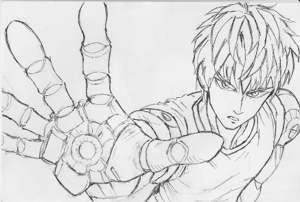 いつも模写だが、描くからには、好きなシーンを。ジェノス=焼却なので、コミックで初出