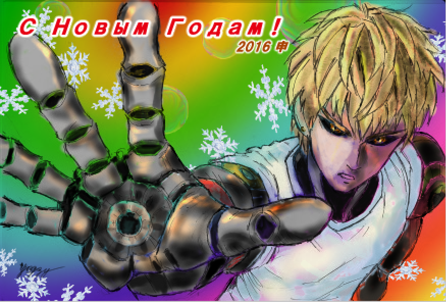 | 説明文 | クリップ スタジオも、年1回、年賀のみなので、毎度忘れる; 公式本、公式サイト見つつ。 スニップしたら、色がモノクロに; 資料がモノクロだと不便。公式2話(小さい)や、 検索した画像見つつ・・・ かなり塗ってから、検索画像を出せないか?と気づき、読み込み? ファイル? でレイヤーへ。 レイヤーの可視、不可視切り替えで、参照できる。少し良かったかも? 本当は、印刷でカラーできれば・・・ 原作と、アニメも色が微妙に違う。原作は、髪が黄色? アニメは、ベージュ? ジェノスの腕も、色々Ver有るし、服も・・・ 特に、メカ部分の腕・・・ 殆ど灰色だが、部分的に赤? 緑?も 絵描きソフトは多機能だが、一々切り替えが面倒; どうしたいか、考えてしまう。 塗りも、水彩か、ブラシか・・・ 水彩はムラ出来て難しい? 髪の塗りも、もっときれいにしたかった; 焼き込むと、赤くなる。赤よりベージュの 暗いのが・・・ 背景も、毎度、効果で。グラデ、虹色を楕円で。設定も色々できるが 焼却=火? で夕焼け(黄、オレンジ、黒)も 虹と夕焼け2枚。夕焼けを不可視にすると、明るく薄い。重厚が良いから 2枚可視で。・・・顔など暗くなった; 気になるなら、顔などの部分のグラデを消しても・・・ と思ってそのまま 字も、迷うが、時間も無く、最上デフォルトの、創英角ゴシック? 太字、斜体・・・ 今回、本で、「ふち」を知り、使うと便利! キャラのふちも使えるが、字に。 絵板だと、手書きで、なぞるのが、レイヤーで簡単に。 ふち太さも、色々選べるが、細目で。 装飾ブラシも、大体同じのになる。雪結晶、シャボン。桜花弁は使わず。 イメージ通り出来ないが、なんとか完成; 12月は、Xmas、迎春準備と、毎年仕事多忙。今回も、左目が不調で、しみて CL(コンタクト)入りづらく、仕事も、しんどかった; 眼鏡で見えにくかったり。やっと年始、やや回復。近々眼科行こう ’17年賀は、りんね? りんね、ワンパン、アルスラーン2期楽しみだが、ワンパンは 原作溜まって無いから、今年無理かも Chixiも、絵板のらくがきすら、未完で描けない; 中々来れないが。今年もよろしくお願いします ^^ |