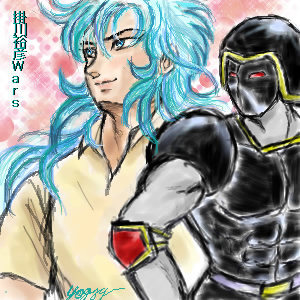 ちぃで保存出来ない頃、田中亮一Wars=ドジで照れ屋、 堀 秀行Wars=クールでキザ・・・を一発早描き; 荒いので、続き可能な今、直してみたい