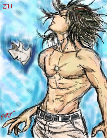 突然背後から攻撃、ジン、吐血。 「もう少し我慢してくれ。すぐ決着付ける」