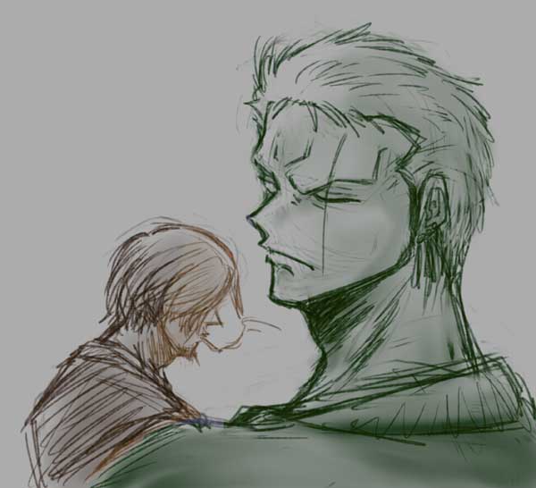 古い絵をアップ 嗜好はZLなんですが相棒がSZなので、メールに添付するイラストが大体無難にゾロを描いてしまうのでけっこう溜まっています…がものの見事に顔だけなんでもっと全身絵描こうよ自分。