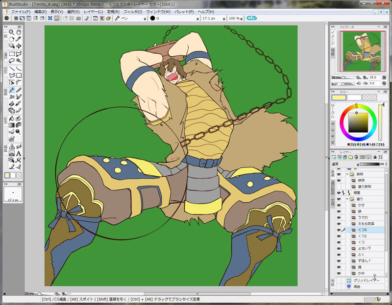 鎖と鉄球をフリーハンドで描く自信がないのでIllustStudioに移行。 まずはざっくりと下塗り。 しまった!画像がでかすぎた!修正修正(^^;