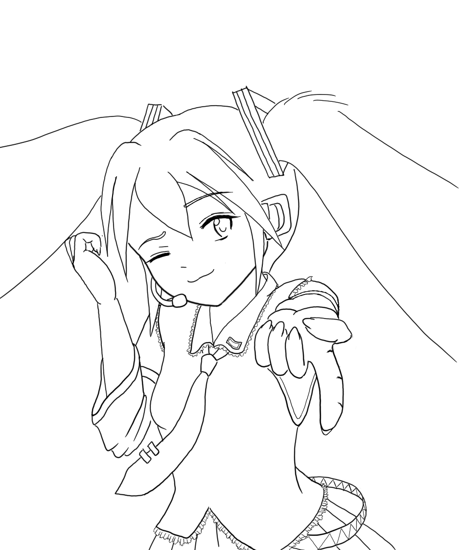 お昼休みに、こっそりちょろちょろを鉛筆で描いたミクさん。折角だからスキャナーで、パソコンに取り込んで