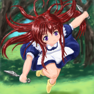 動きのあるイラストを描こうと思い描きはじめたら、くないを持ったメイドになったw