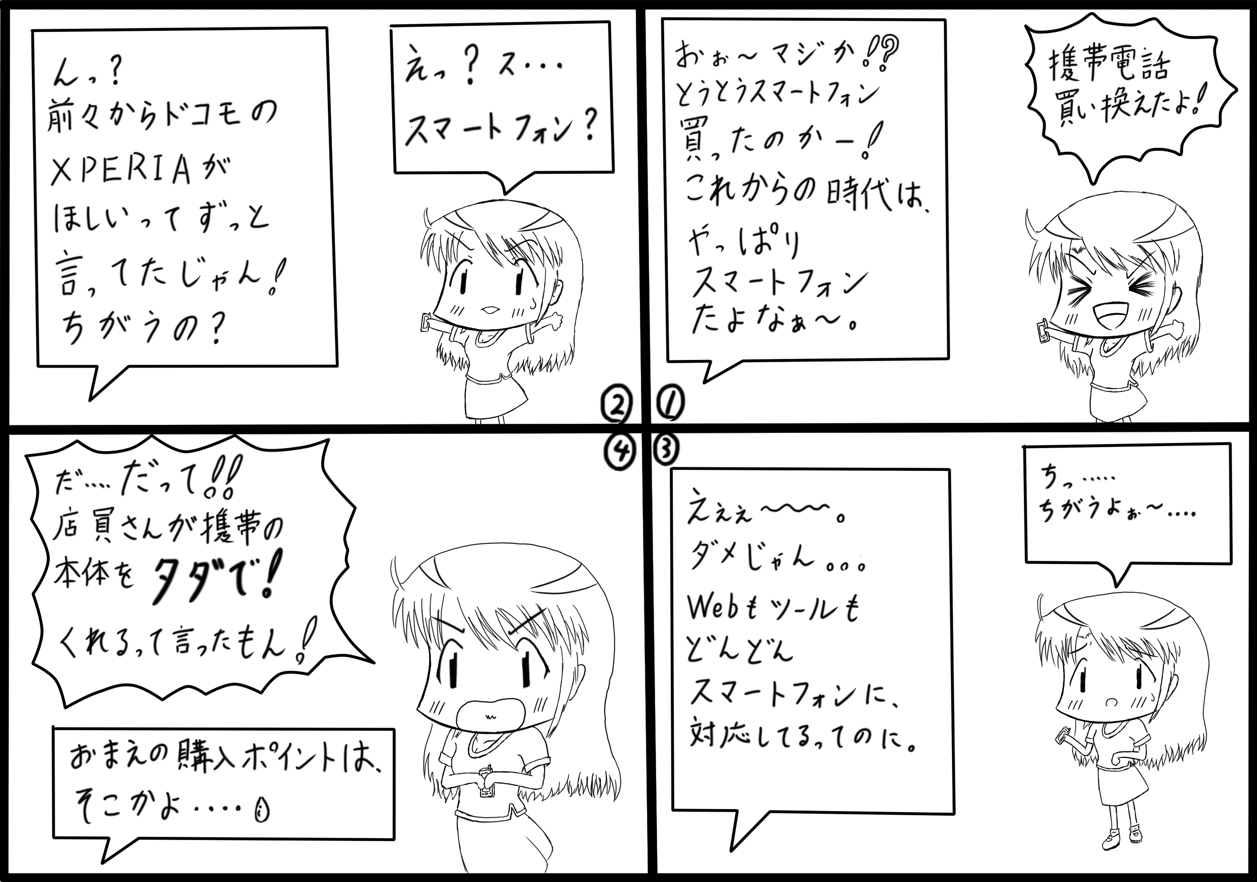 携帯買い換えて、自分が自分に思ったことを、絵日記にしてみました。