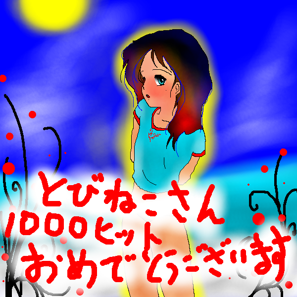 とびねこさん、1000ヒットおめでとうございます!! リクエスト微乳こんな感じですが、どうでしょう・・・? 次はオール3の3333とか? よければまた描かしてくださいね♪