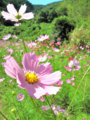 ちかくのおばちゃんの畑のコスモスがきれいだったのでパチリと一枚。風にゆれてぶれまくり、しばらく撮り直してやっと撮れた。