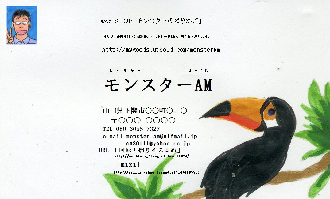 サンプル名刺.9鳥肖像入り完成版見本