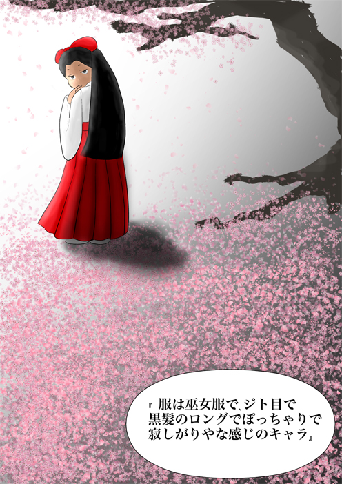 のどかは『服は巫女服で、ジト目で黒髪のロングでぽっちゃりで
