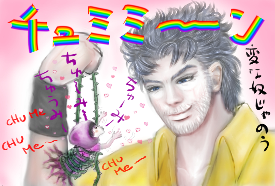 | 説明文 | エンプレスのチュミミーンの由来って「私にチューして」を和製英語風に「CHU ME・・・チュウミー・・・チュミミーン」になったのでは?とアニメを見て思いつき衝動的に描きました。 まあ全然関係ないと思いますが┐(´-`)┌ 7部ジョニィのタスクもチュミミーンって言いますが、こっちはチューして、とは関係ないっすね(v_v) |