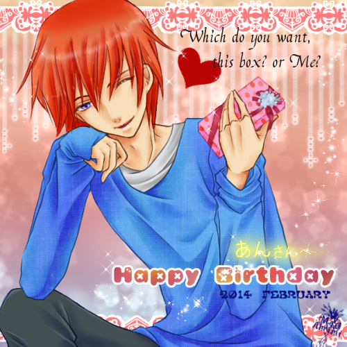 | 説明文 | ちょこっと?遅れましたが… ..:*・Happy Birthday..:*・ な…なんだかソフトが重くて、しょっちゅうフリーズするんですよね~…orz もうPCが限界なのかな……イヤァ━━ヽ(゚Д゚)ノ━━ン!! そんなこんなで、なんだか…線もガタガタで申し訳ないですが キラキラ飛ばしたりしてごまか……ゲフゲフッ ともあれ~、おめでとうございます~♪ |