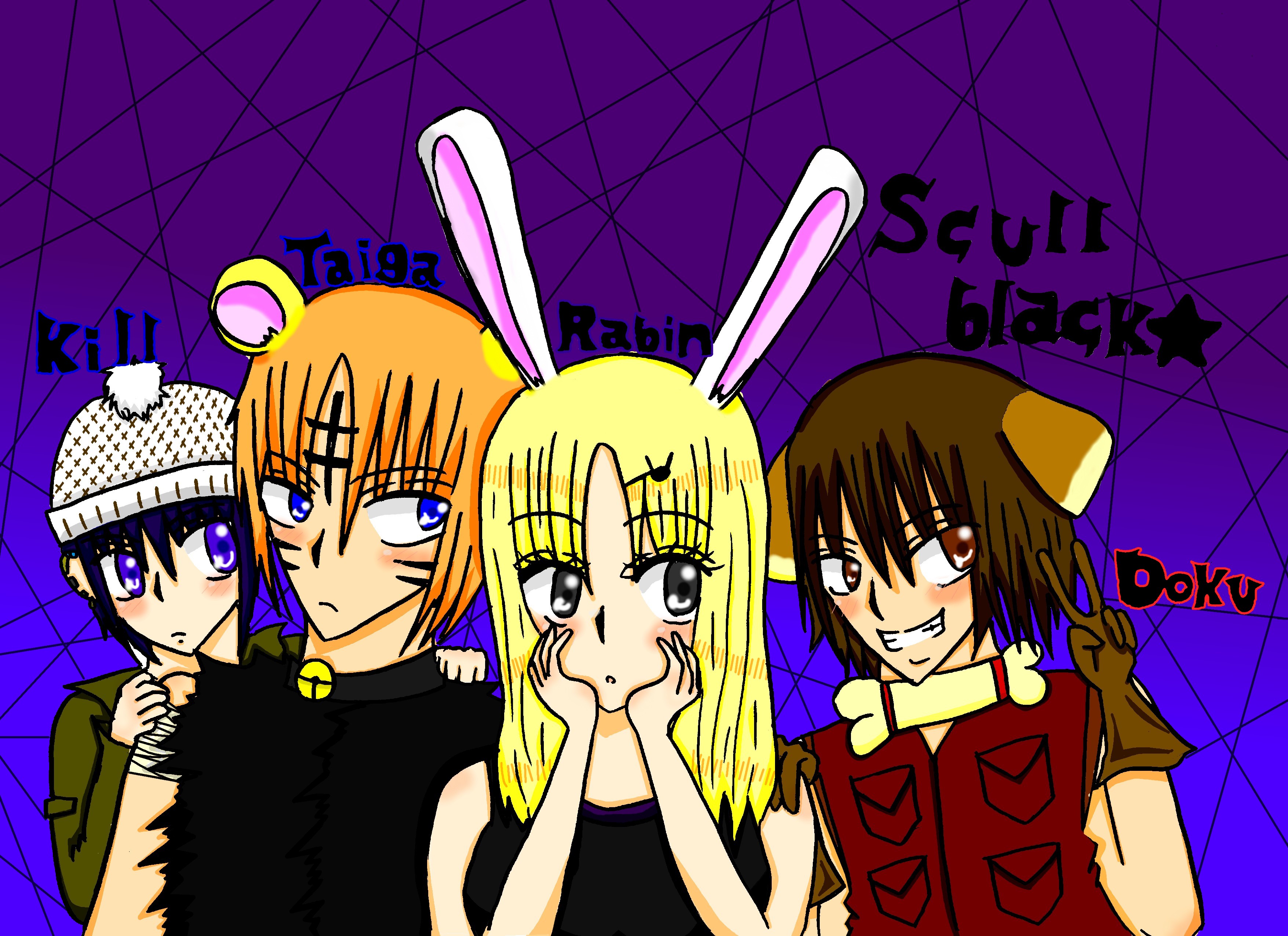 ドク「誰から~?え?俺?はいはい。じゃあ紹介しま~す!俺の隣にすわってるのはラビン。17歳。このグループ、スカルブラックのリーダーで、操りのイヴ。よく岩とかを飛ばしては俺の上にどっかーん!!!」