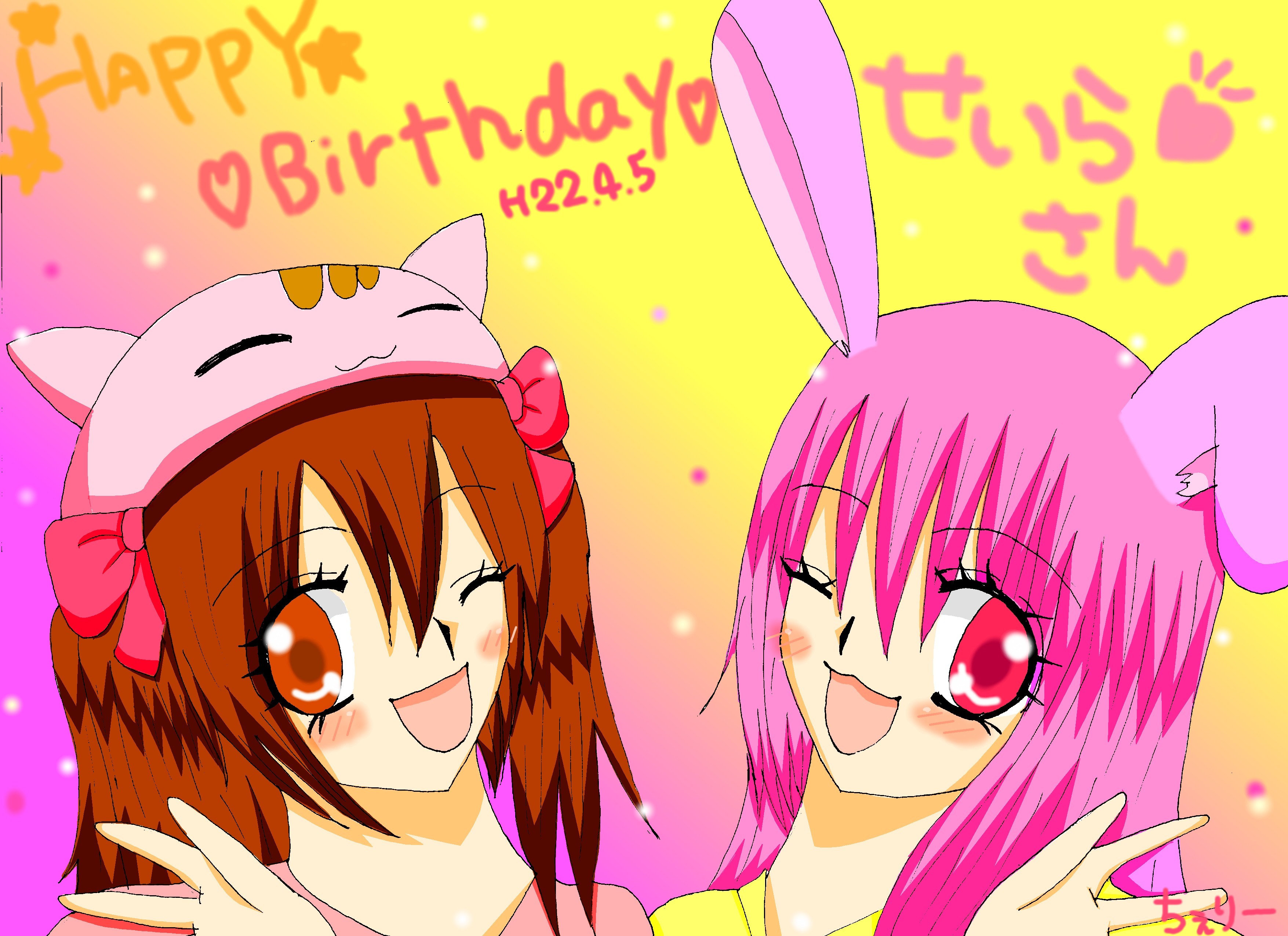 せいらさん、一日遅れてすみません!リクエストの、ちぇりーうさとちまねこちゃんです^^♥