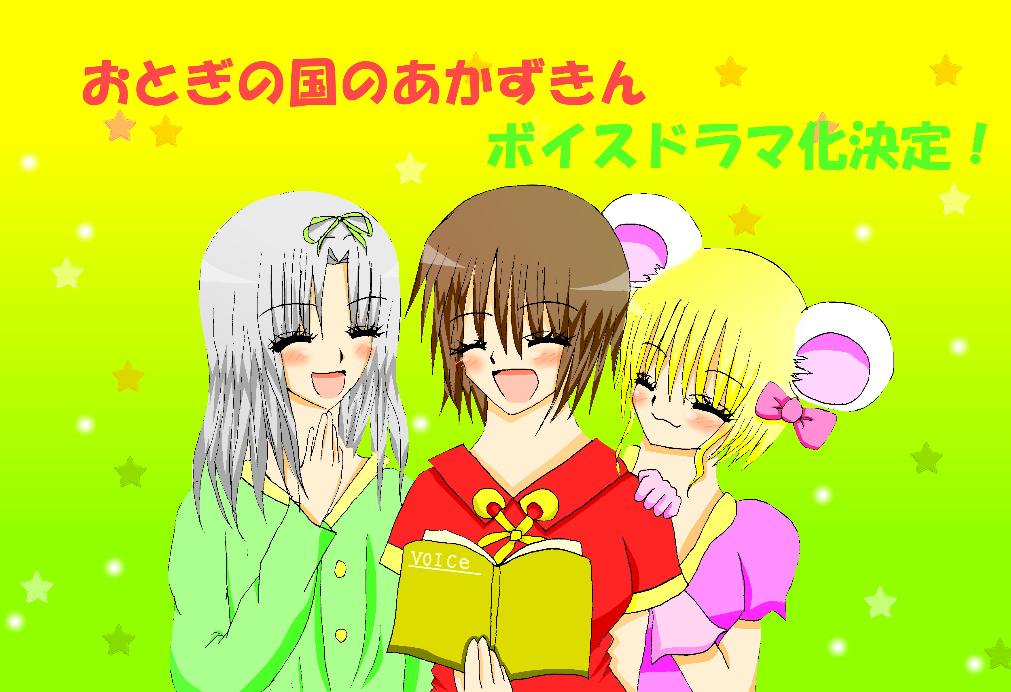 イラストにある通り、おとぎの国のあかずきん、ボイスドラマ化決定しました!!・・・・・っていっても、GREEっていうサイトの中でのコミュニティでだけど・・・///