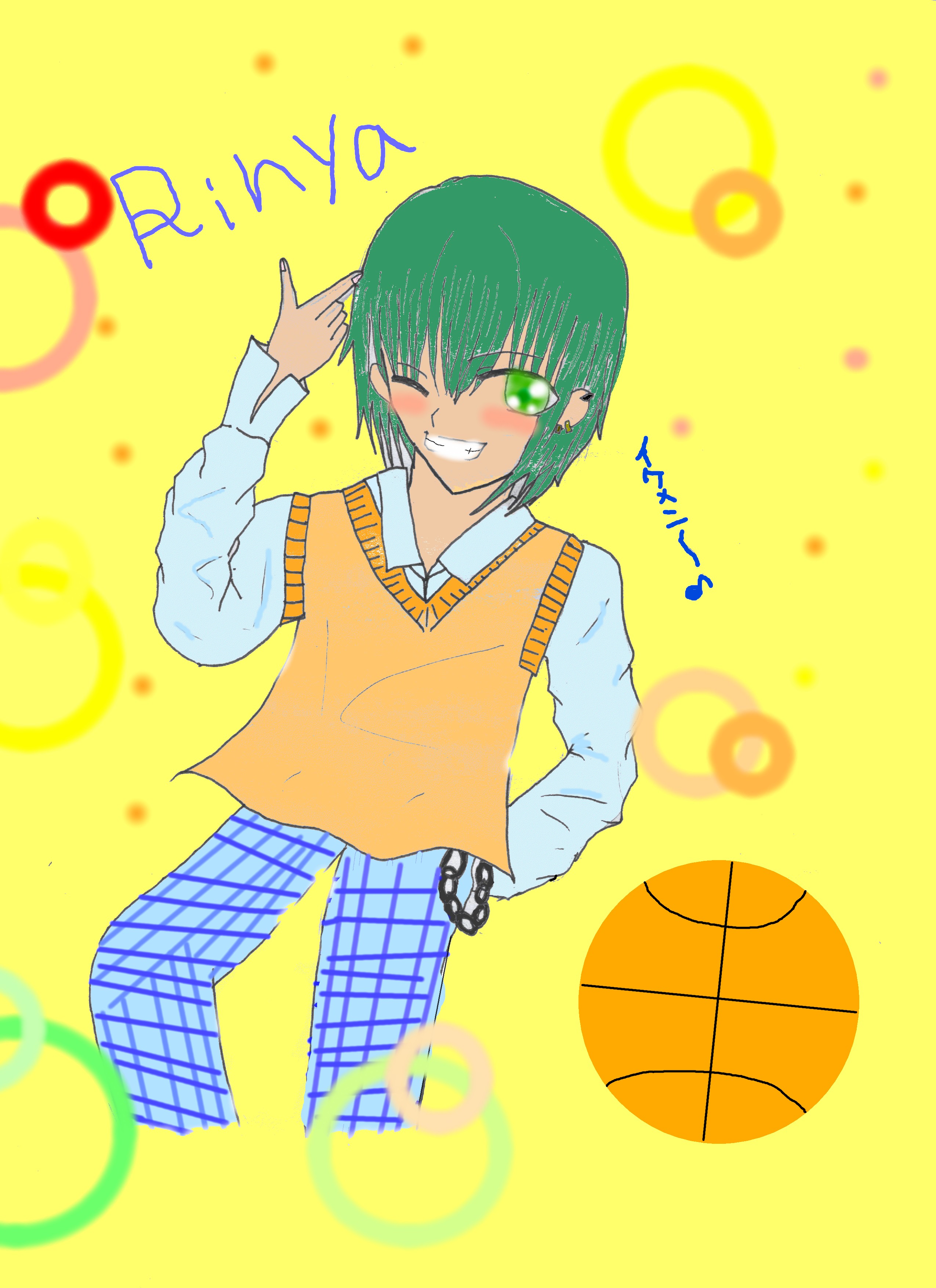 上のイラストは凛也くん。わたしのキャラの一人です。バスケバカです。あと彼女にぞっこんです。