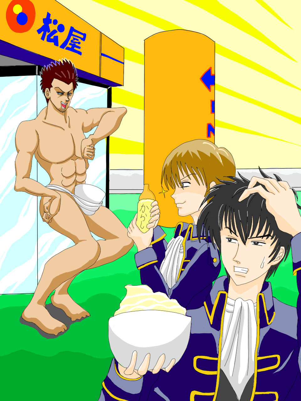 松屋の前に近藤局長が言いました。「これが食べ歩きのスタイルだ!」と