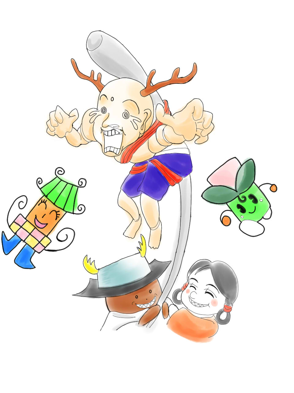 のぼり旗はせんとくん描かれていたので、同じまんとくんやなーむくんは不満げです。なのでせんとくん自身のぼり旗を揚げる図ですw