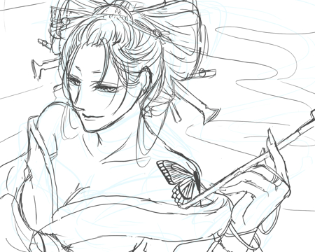花魁(のつもり)と肩の蝶がチャレンジのやつ。