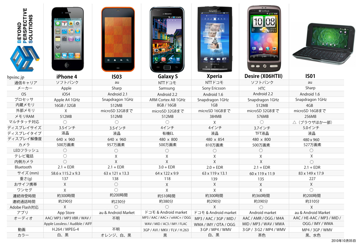 ■iPhone 4, IS03, Galaxy S, Xperia, Desire, IS01の比較をしてみた