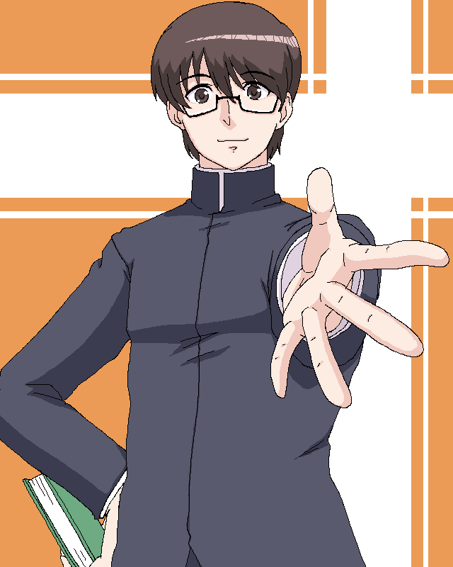 色々考えたが浩作にかっこよさは要らんと言う結論に達したので 浩作らしいキメポーズを考えてみた。 本は外せないとして緋沙希との関係性を考え 笑顔で迎え入れる信頼できる男子的な感じに変更。 ああ、違和感無いわ(笑)