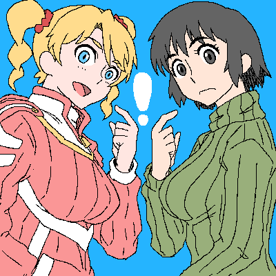 某所でコレの前に右の子描いたんですが 私だと思われなかったので自分のキャラと一緒に描いたという ちょっとした意思表示に描きました 影がないのはその方がなんか雰囲気が良かったからです。 さて右の子は誰だったのでしょう?(笑)