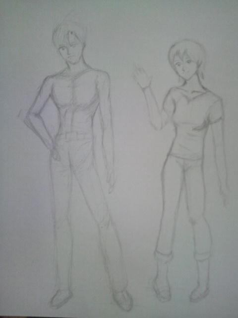 立ち姿ですが、肩の角度、ウエスト、骨盤の位置などをかなり意識して、アタリをとって描いたつもりですが・・・・・