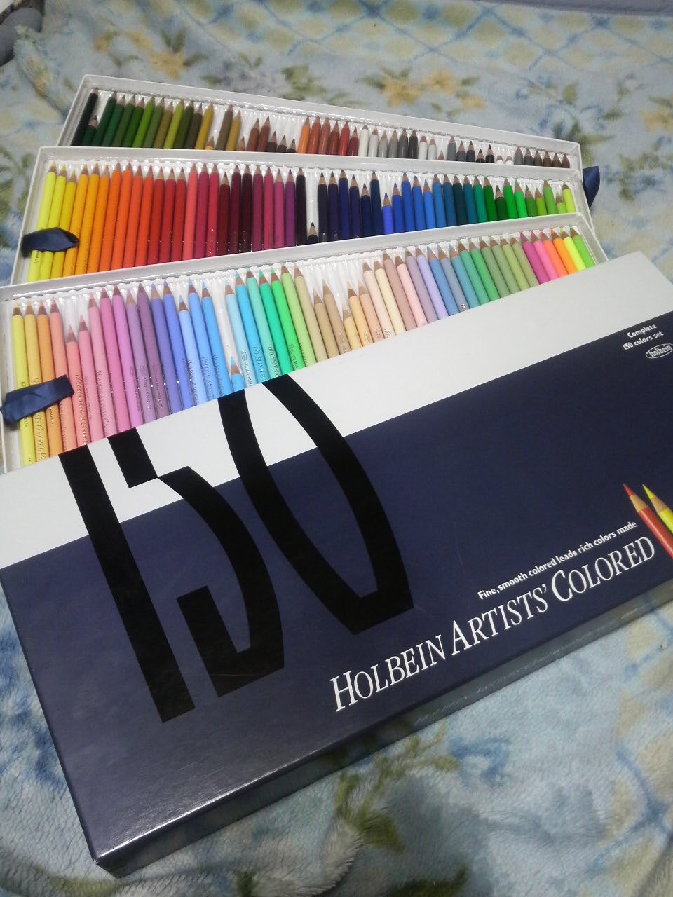 その後、ネットなどで色鉛筆のことを調べ、ホルベインのアーチスト(150色)を購入しました。