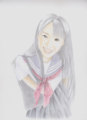 セーラー服の部分は、濃い目のグレーでしっかり塗っておき、さらに暗いところは、黒で影を付けました。