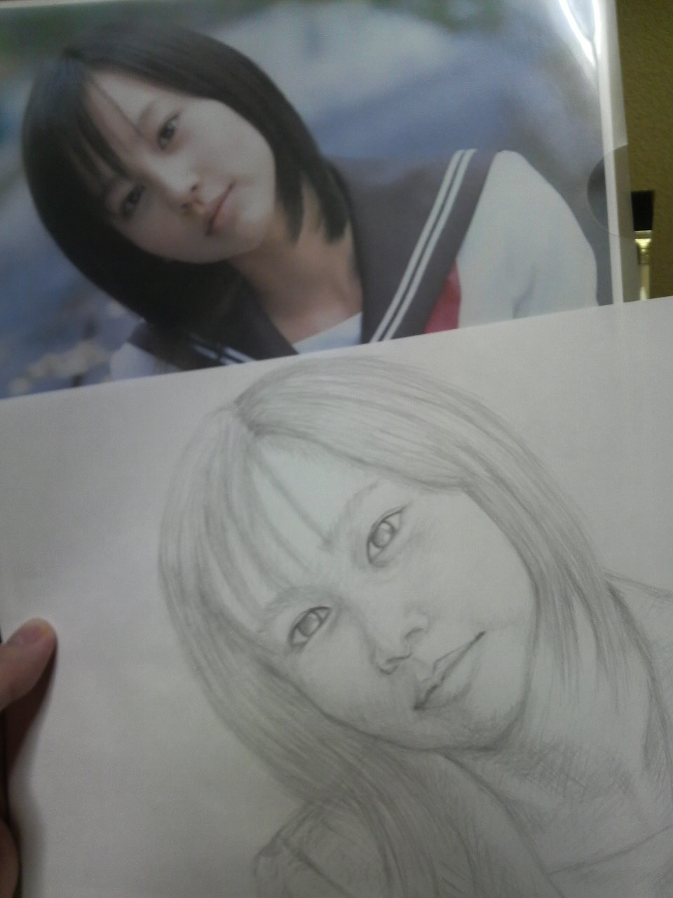 橋本愛さん 色鉛筆メイキング01(鉛筆ラフ)